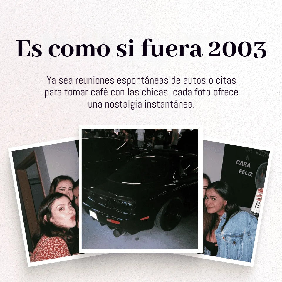 📍 Por supuesto. Nuestro sistema de flash inteligente está diseñado para entornos con poca luz. Desde discotecas hasta sesiones al atardecer, conseguirás vibraciones Y2K perfectas con cualquier iluminación.