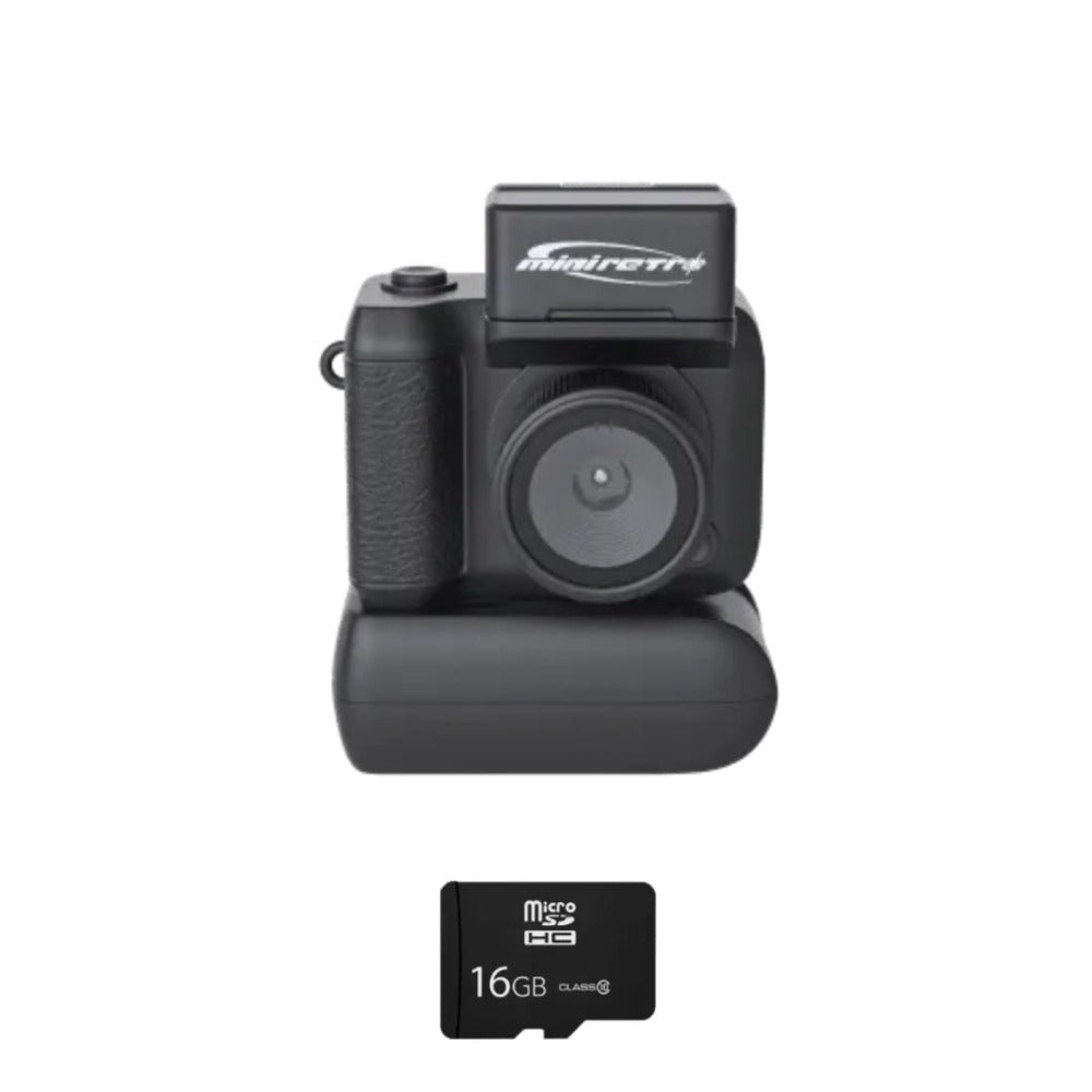 📍 Tu cámara Mini Retro, cable de carga USB-C, guía de inicio rápido y cordón. Añade un paquete de tarjetas SD para empezar a crear de inmediato y ahorra 20 €.