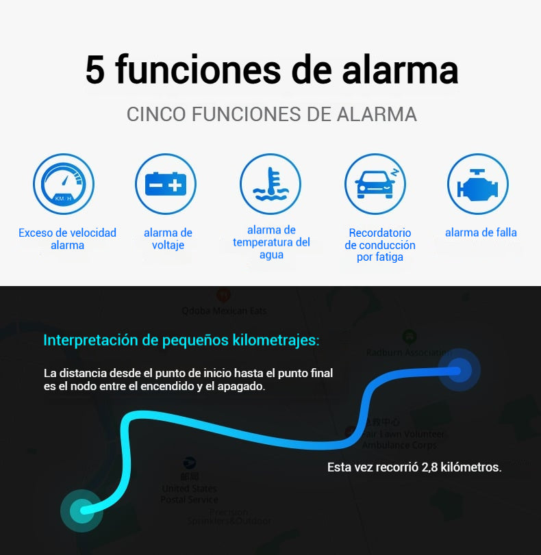 Multifunción: Heads up display puede mostrar la velocidad del vehículo, la temperatura del agua, el voltaje, el kilometraje de ida. Con función de alarma, alarma de exceso de velocidad, alarma de temperatura del agua, alarma de voltaje, recordatorio de conducción cansada, alarma de avería. HUD tiene una función de sensor de luz adaptable, con luz de fondo clara durante el día y suave y deslumbrante por la noche.